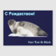 A mother Ringed Seal and pup on an ice floe. Cyrillic text reading "S Rozhdestvom" (С Рождеством - A Russian Christmas greeting) appears in glowing blue and white. Add your own additional text.