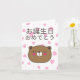 Japanese language birthday card with happy birthday message in Japanese (お誕生日おめでとう, o-tanjoubi omedetou, happy birthday in Japanese) and cute Japanese style illustration. This Japanese greetings card is blank inside for your own message.