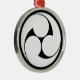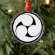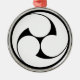 【ひだりみつともえ】巴紋/巴の左右は渦の巻き方ではなく、作図上から作られた合理的な名称なのでした。こうしたことは、上絵師ならすぐに判ることですが、一度も紋を作図したことのない先生はただ渦の巻く方向にだけ気を取られるのでしょう。しかし、上絵師でも咄嗟に巴の左右に迷うことがあります。そんなとき、上絵師はうまい口伝を思い出します。・・・まず左掌を握って手首を見ます。するとその形が左巴の形になっているのです。右掌を握れば、たちどころに右巴の形が現れるわけです。(泡坂妻夫著「家紋の話」P61)/この図案は、地抜き(摺込み)仕様です。摺込みというのは・・作図して巴を切り抜いて型紙を作り・・この型紙を生地の上に置き、塗料を刷毛で摺込む、その技法からきた言葉です(泡坂妻夫著「卍の魔力、巴の呪力」P146参考)