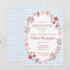003 Cobalt Blue Wildflower Bow Gingham Baby Shower Invitation