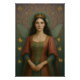 This enchanting artwork features a fairy princess in a muted rose and teal green gown adorned with golden embroidery, set against a purple and teal background with floral motifs. Her serene gaze and shimmering iridescent wings evoke a sense of regal grace and timeless fantasy. Perfect for lovers of fairy tales, fantasy art, and magical elegance. This artwork was generated by AI based on original human concepts.