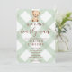 019 Forest Green Teddy Bear Gingham Baby Shower Invitation