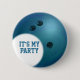 Personalized birthday bowling ball button tells everyone it's your day. Part of a fun blue and black bowling ball design with 12 essential party supplies for your sports themed party. Party on!