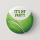 Personalized birthday Tennis ball button tells everyone it's your day. Part of a fun and bold green Tennis design party supply set of 12, essential for your sports themed party. Party on!