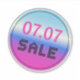 07.07 sale round sticker with a holographic glossy gradient, bright pink colour and black dotted font (1pc)