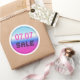 07.07 sale round sticker with a holographic glossy gradient, bright pink colour and black dotted font