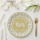 0th Birthday Funky Number Pattern Gold/White Paper Plate