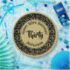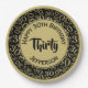 This design is a black and gold random number pattern with milestone number 30 repeated in varied sizes and angles.  Your text is printed on the gold circle in the centre.  The design is trimmed with gold and black rings around the rim.