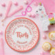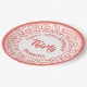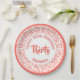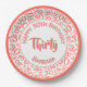 This cool design is a coral and white random number pattern with milestone number 30 repeated in varied sizes and angles. Your text is printed on the white circle in the centre. The design is trimmed with coral and white rings around the rim.