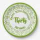 Easily personalize the text in the centre with your name, age, and event using the text templates provided. This design is a green and white random number pattern with milestone number 30 repeated in varied sizes and angles. Your text is printed on the white circle in the centre. The design is trimmed with white and green rings around the rim. Not just for birthdays; the design is suitable for all occasions, personal or professional, featuring milestone number thirty.