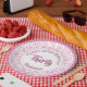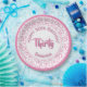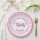 This design is a pink and white random number pattern with milestone number 30 repeated in varied sizes and angles. Your text is printed on the white circle in the centre. The design is trimmed with white and pink rings around the rim.