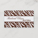 These 100 2x3.5 Sized White and Brown Zebra Print Pattern business card is perfect for any business and is completely customizable. It is printed on smooth, matte 88lb white card stock with full colour two sided printing! 100 cards per QTY of 1.