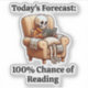 Embrace your perfect reading weather with the "Today's Forecast: 100% Chance of Reading" funny bookish book lover sticker! This playful design is ideal for bibliophiles who love cozy days spent with their favourite books. Perfect for decorating laptops, journals, or water bottles, this durable sticker adds a fun and literary touch to your belongings. A thoughtful gift for bookworms who know there's always time for a good read. Let your passion for books shine with this witty and stylish design