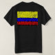 Hermosa camiseta con "100% Colombiano" en el frente y la bandera de colombia con rayas negras en la espalda. T-Shirt with the text "100% Colombiano" in the front, and the colombian flag with black dots in the back.