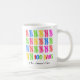 This cheerful coffee mug commemorates the exciting milestone of 100 days of school! The design consists of colourful tally marks and a place to add your own text, such as your classroom's teacher's name. It makes a great addition to a classroom party or celebration of the 100th day. It also makes a special teacher gift!