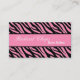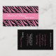 These 100 2x3.5 Sized Light Pink Black Zebra Print Pattern business card is perfect for any business and is completely customizable. It is printed on smooth, matte 88lb white card stock with full colour two sided printing! 100 cards per QTY of 1.