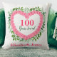 Admirez une dame spéciale à l'occasion de son 100e anniversaire avec ce magnifique coussin amoureux de 100 ans. Personnalisez avec son nom ou un autre message. Idée cadeau de 100e anniversaire parfaite pour la femme qui a tout!