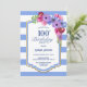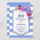 100th Birthday Blue Striped Floral Party Invitation