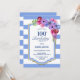 Blue striped floral 100th birthday party invitation.