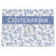 This design is a blue and white random number pattern with the blue milestone number 100 which is repeated in varied sizes and angles then printed on a white background. There is a ribbon banner with, "Centenarian," and a digital gift tag printed on the front for your name and message; both have text templates. You can easily personalize the text to your own words, name, or monogram.