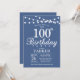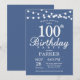 100th Birthday Invitation with String Lights.Blue Background. Men or Women Birthday. 13th 15th 16th 18th 20th 21st 30th 40th 50th 60th 70th 80th 90th 100th, Any age. For further customization, please click the "Customize it" button and use our design tool to modify this template.