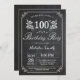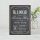 100th Birthday Invitation with Rustic Chalkboard Background and Floral Flower Pattern, Black and White. Adult Birthday. Male Men or Women Birthday. Kids Boy or Girl Lady Teen Teenage Bday Invite. 13th 15th 16th 18th 20th 21st 30th 40th 50th 60th 70th 80th 90th 100th. Any Age. For further customization, please click the "Customize it" button and use our design tool to modify this template.