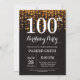 100th Birthday Invitation Gold Glitter