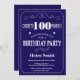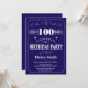 100th Birthday Invitation Navy Blue and White Typography. Navy Blue and White Background. Adult Birthday. Male Men or Women Birthday. Kids Boy or Girl Lady Teen Teenage Bday Invite. 13th 15th 16th 18th 20th 21st 30th 40th 50th 60th 70th 80th 90th 100th. Any Age. For further customization, please click the "Customize it" button and use our design tool to modify this template.