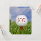 Close up of a white golf ball on red tee in grass for 100th birthday party invitation.