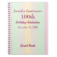 This 100th Birthday Party Guest Book spiral notebook is decorated with a pastel stripe pattern. Easy to customize, just CHANGE or delete EXAMPLE NAME. All Rights Reserved © 2014 Alan & Marcia Socolik.