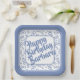 100th Birthday Random Number Pattern Blue/White Paper Plate