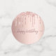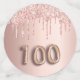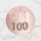 Girly and feminine confetti for a 100th birthday party table setting. A rose gold faux metallic, foil looking background decorated with faux rose gold glitter drips. Personalize and add her name/text. Dark rose gold coloured letters. Some confetti chips with name and date, others with number 100 written with a balloon style fonts, and with the text Happy Birthday.