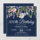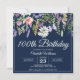 100th Birthday Wildflowers Navy Blue Elegant Invitation