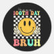 100th Day Bruh Smile Face 100 Days Of School Boys Classic Round Sticker