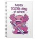Cute design featuring an axolotl wearing a backpack and holding a big pen with the quote "Happy 100th day of school". Happy 100 days of school or Happy 100th day of Kindergarten.