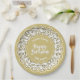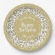 100th Gold/White Random Number Pattern Paper Plate