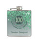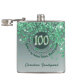 100th & Green Glitter & Drinking Quote Hip Flask