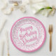 100th Party Random Number Pattern Pink/White Paper Plate