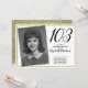 This pretty white and gold 103rd birthday invitation for her includes a customizable photo with a faux watercolor paper texture, and will set a fun and celebratory tone. Note: The foil border is printed and not actual shiny foil!