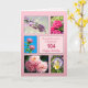 104th carte d'anniversaire. Envoyez les belles fleurs à une belle personne. Une carte d'anniversaire avec un beau sentiment. Une collection d'images encadrées des fleurs sur un arrière - plan rose.
