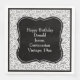This modern design has is a bracket-shape printed over a black and white random number pattern which was created using a back milestone number 105 scattered in various sizes and angles over a white background. Your custom text is printed in the centre of the black bracket shape.