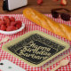 This centennial design has a black and gold random number pattern with a gold milestone number 105 repeated in varied sizes and angles on a black background. There is a square in the centre for your text and a black and white frame around the rim.