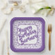 105th Birthday Random Number Pattern Purple/White Paper Plate