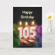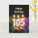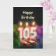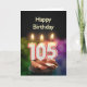 A birthday cup-cake with candles. The candles are made up of the number 105, for a 105th birthday. A birthday card suitable for everybody.
