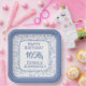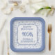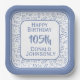 This over-the-hill design has a blue and white random number pattern with the milestone number 105 repeated in varied sizes and angles. There is a white rounded square in the centre for your text and a blue and white frame around the rim.