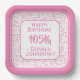 This over-the-hill design has a pink and white random number pattern with the milestone number 105 repeated in varied sizes and angles. There is a white rounded square in the centre for your text and a pink and white frame around the rim.