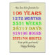 106th birthday card counting down the years, days, months, hours, and minutes. A card to give pause for thought! Leap years have been taken into account!