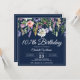 Elegant navy blue and wildflowers 107th birthday invitation that you can personalize with your party details.