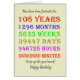 108th birthday card counting down the years, days, months, hours, and minutes. A card to give pause for thought! Leap years have been taken into account!