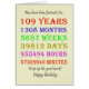 Carte de 109e anniversaire comptant les années, jours, mois, heures et minutes. Une carte pour réfléchir ! Les années bissextiles ont été prises en compte !